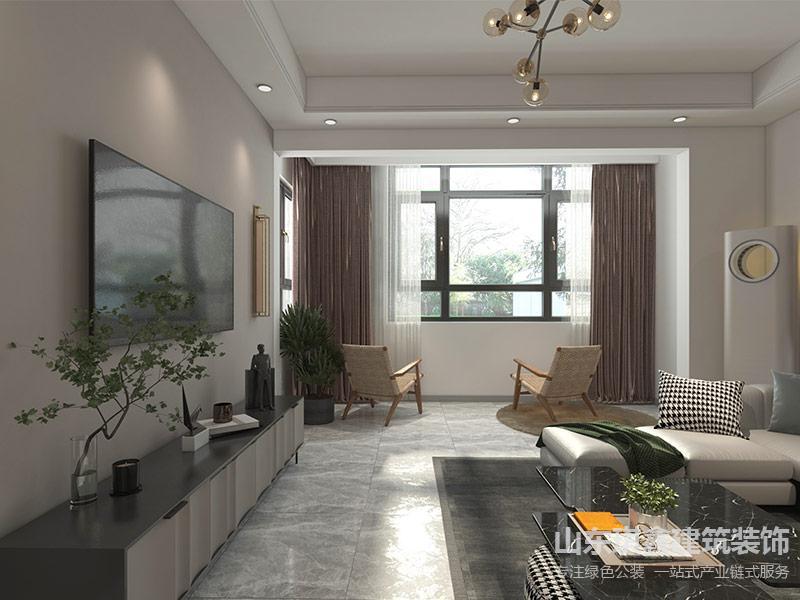 客廳家具的裝修選用了現(xiàn)代風(fēng)格的智能化家具,線條簡潔流暢,既體現(xiàn)了現(xiàn)代感,又不失沉穩(wěn)大氣。地板上鋪著柔軟的地毯,踩上去溫暖而舒適。沙發(fā)旁擺放著一把椅子,可以躺在椅子上看到外面的綠色景象,營造出一種溫馨的氛圍。